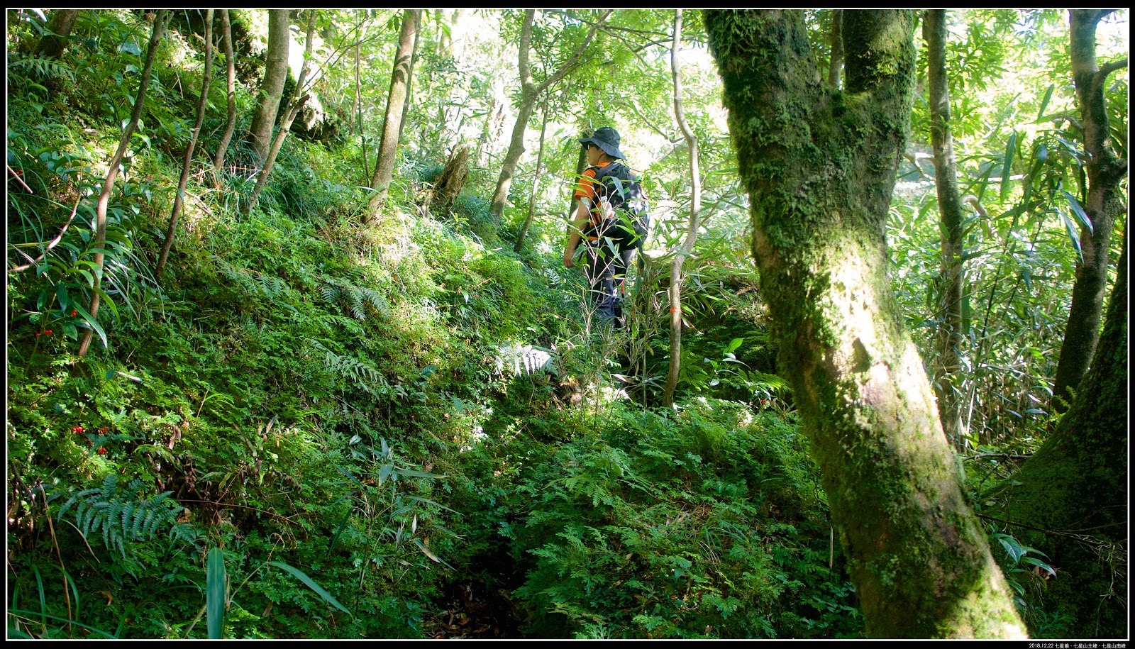 山神廟在「恐龍接吻石」和【七星山主峰】之間,放棄尋找月形池之後,我們繼續往【七星山主峰】前進,尋找兩座山神廟和曹家古墓。