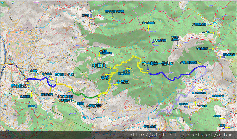 這次〖中正山步道〗-【中正山】-竹子湖路線,大致可以分成幾段: