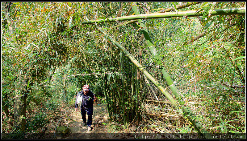 B、從竹子湖中正產業道路的兩個登山口進入〖中正山步道〗,這兩個登山口離【中正山】基點很近,要先從海拔700m爬升到800m,再下降到【中正山】基點的646m,所以這條路線算是非常輕鬆的方式。