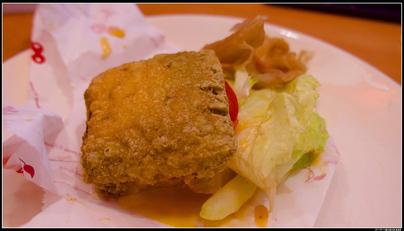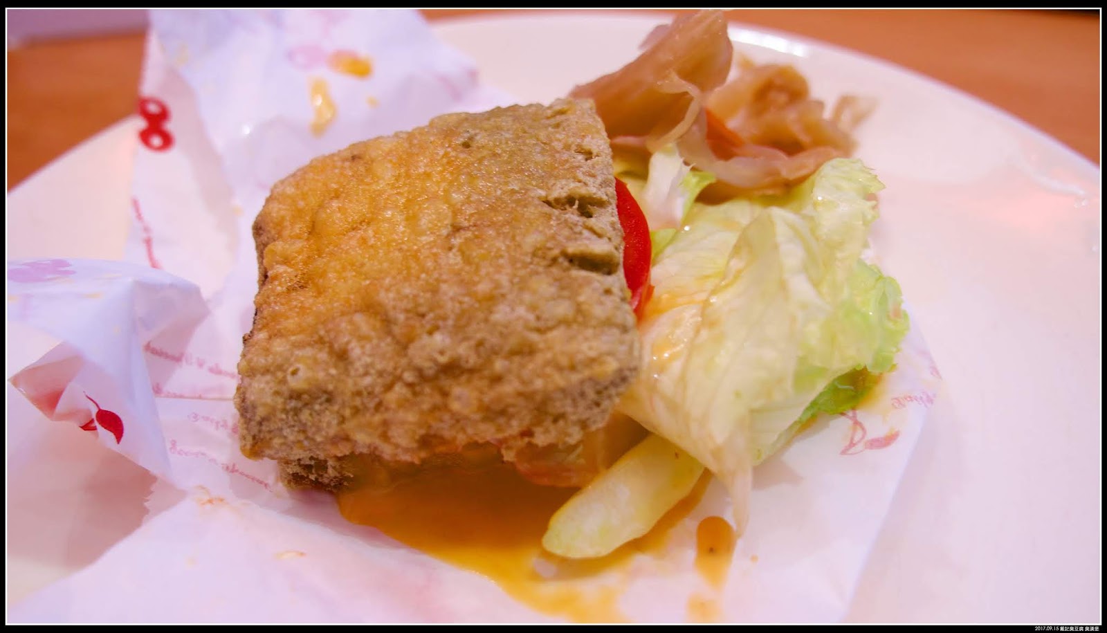 而蕃茄片、生菜、酸菜的清香又襯托出臭豆腐的味道,非常好吃。