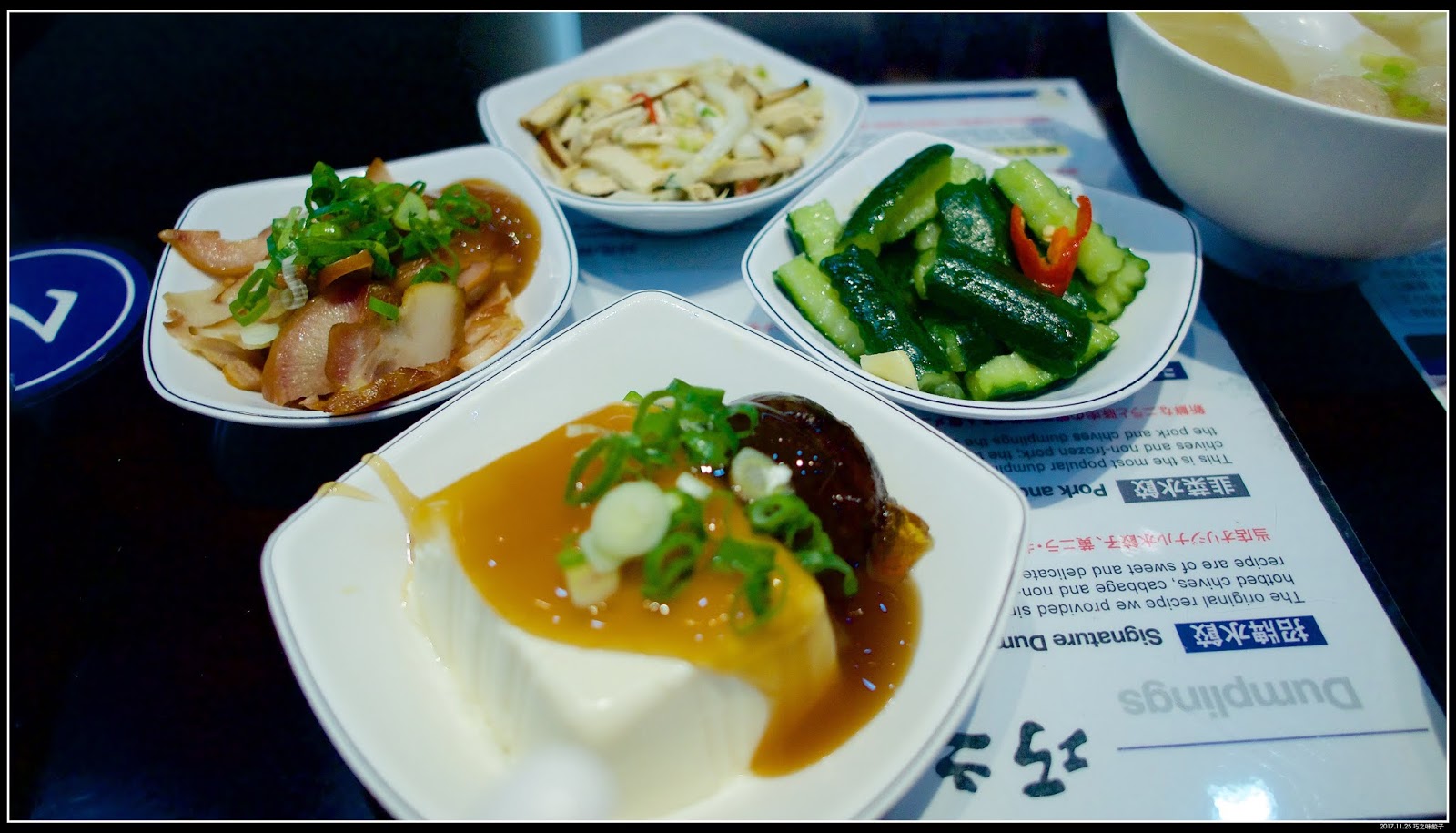 今天點的四盤水餃、四道小菜、兩道湯頭,鋪滿小小桌面,看起來好澎湃啊!哈哈,桌面小的優勢。