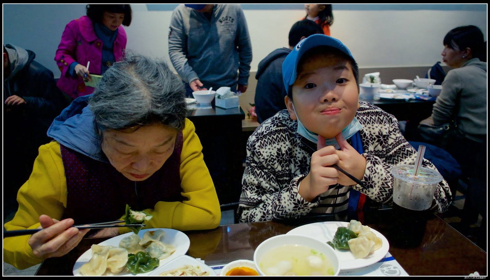 這四人小桌面,用餐起來有點侷促啊~不過,好吃的水餃和小菜,讓父母吃得很開心。