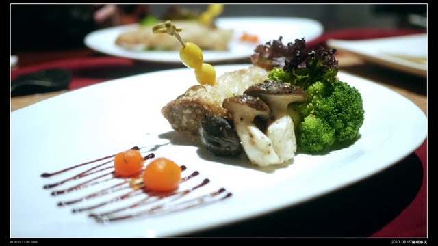 炸蓮藕片和蘆筍,色彩上真是搭配,難怪叫做創意料理!