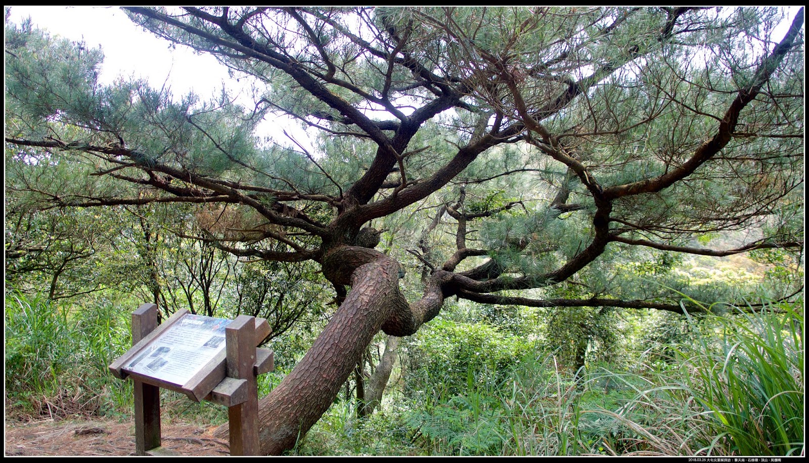 這是日本引進的琉球松,樹形不像其他松樹喜歡直挺挺往上生長,比較像鐵杉,喜歡往旁邊伸展樹梢。