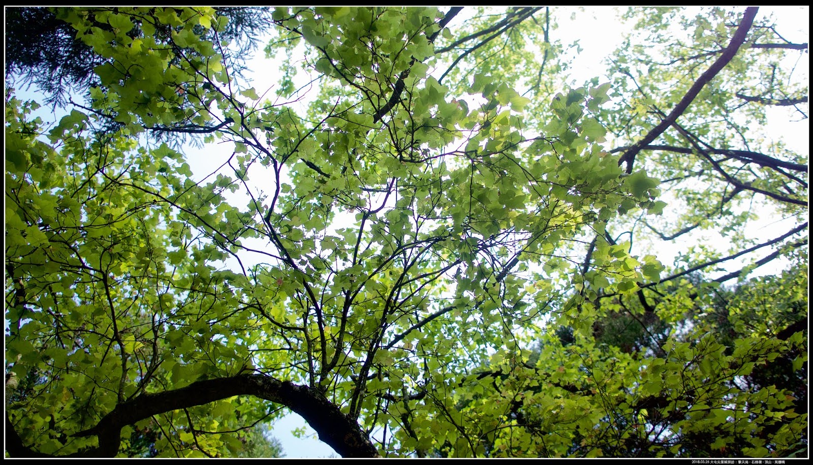 透光下,「楓香」和「大屯尖葉槭」都是偏青綠色。