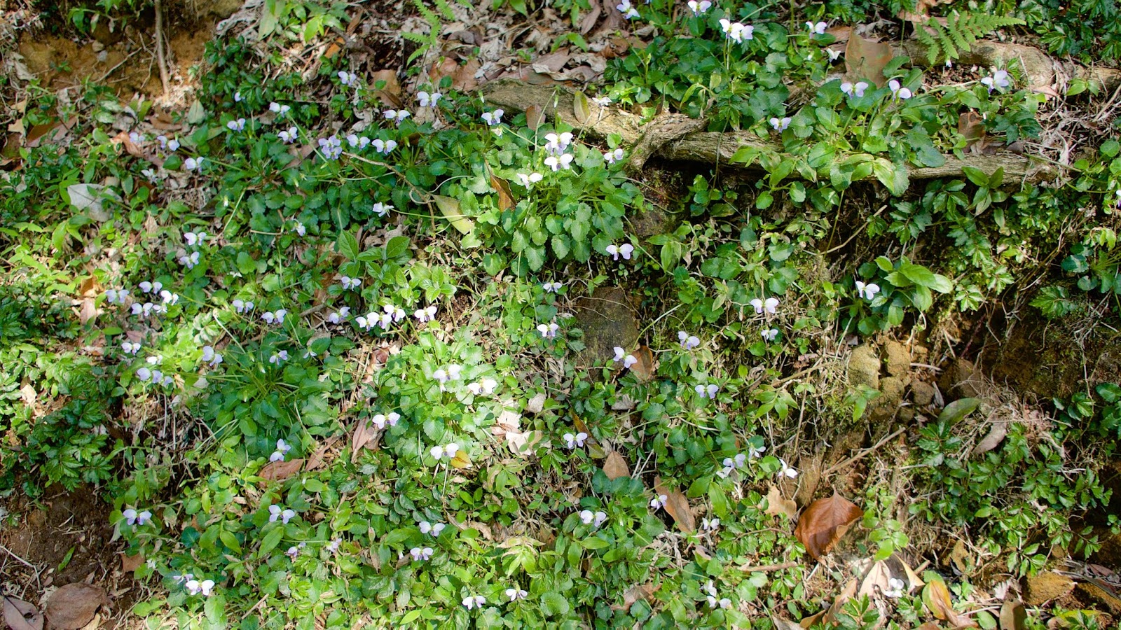 冷擎步道、石梯嶺路上都還是很多台北菫菜,一過了石梯嶺,台北菫菜數量大幅降低,開始出現佛氏通泉草。
