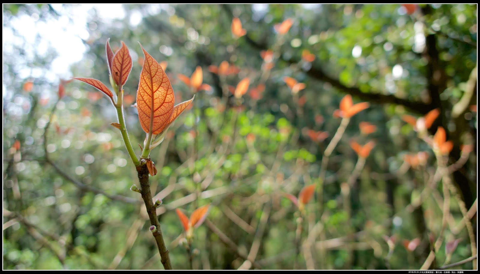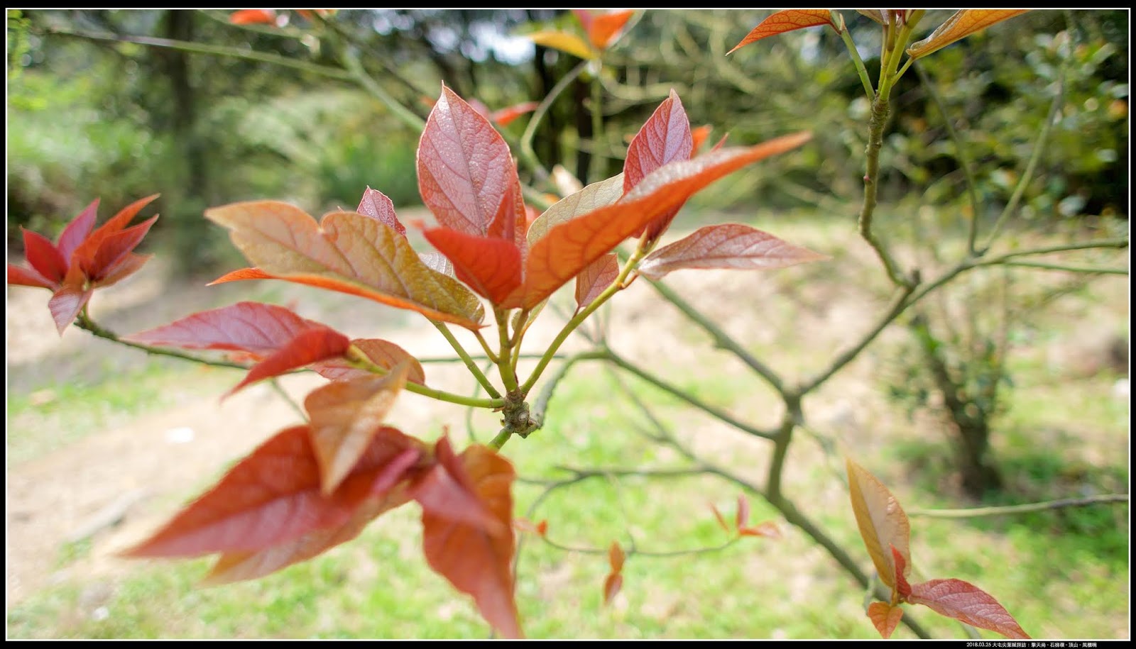「楓香」小嫩芽,雖然也是三裂,不過顏色和葉片形態和「大屯尖葉槭」差異很大,不會弄錯。