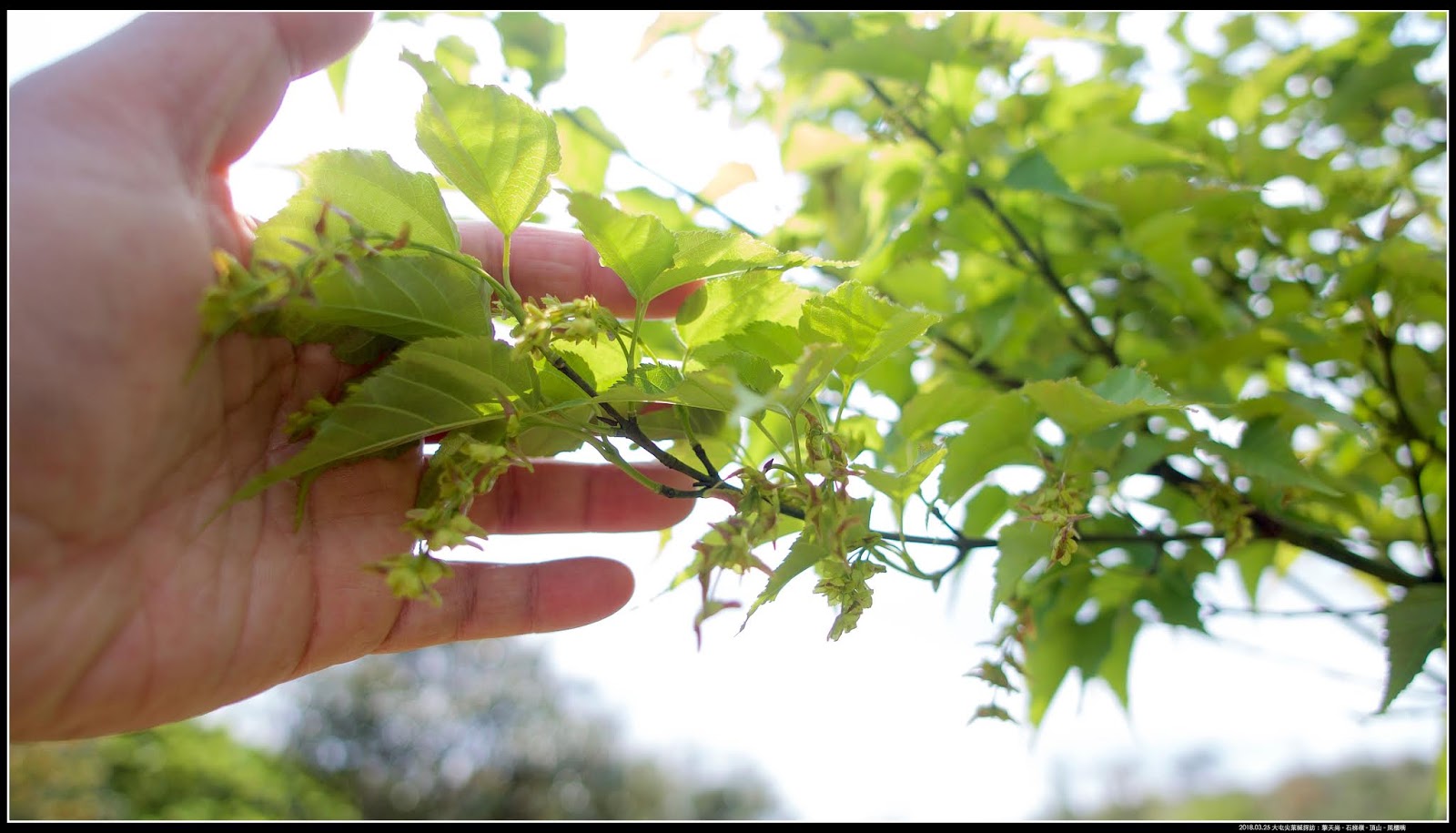 用手比對一下葉片和翅果大小。