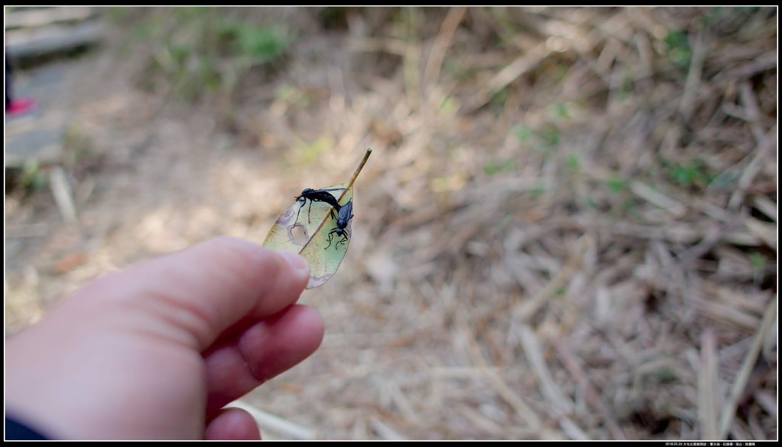 這兩隻「黑毛蚋」完全不顧別人,就在步道正中央交配,好擔心它們倆被踩到。