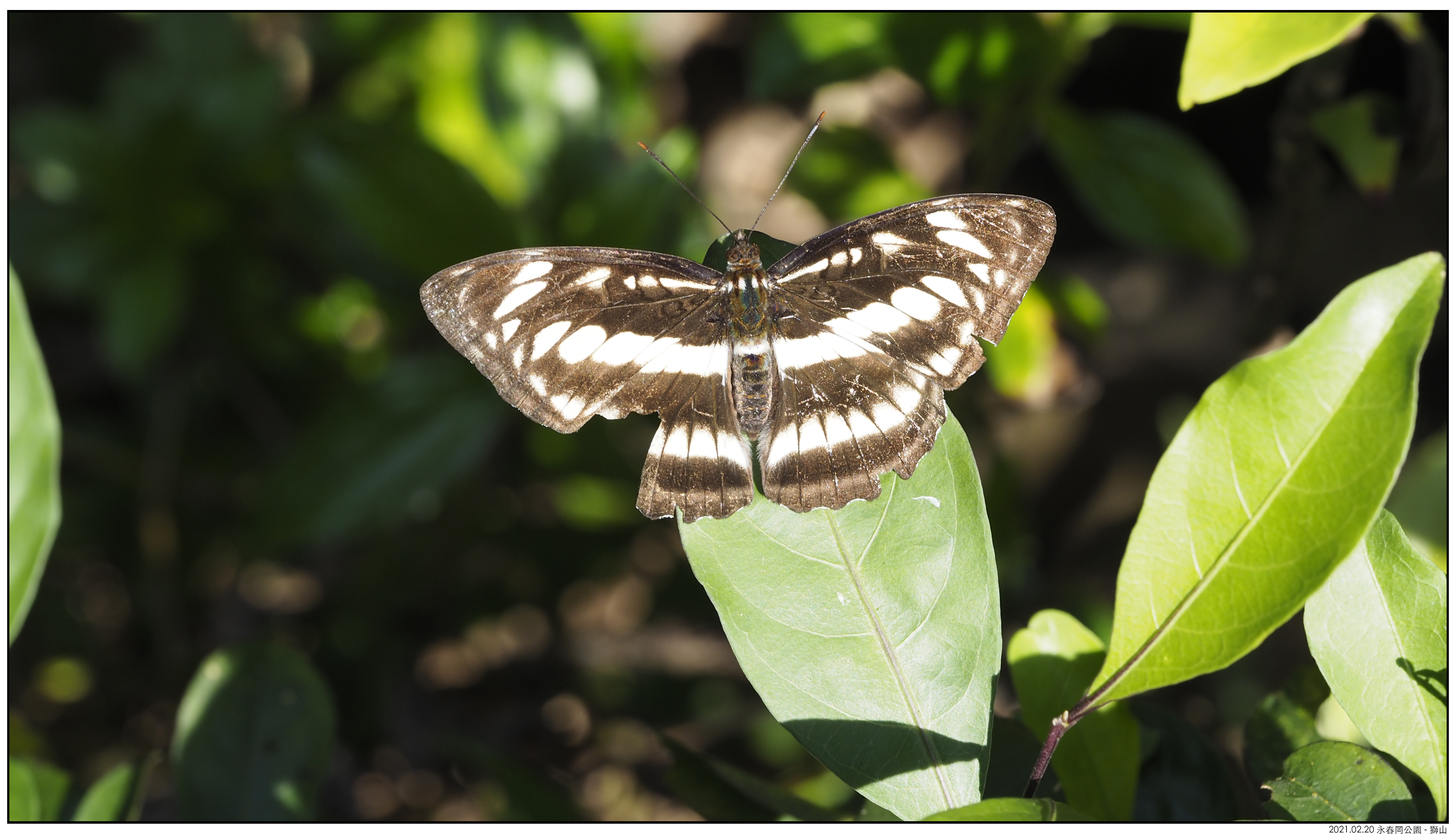 〖台灣單帶蛺蝶〗雄性(雌性是三條淡黃色環帶)。