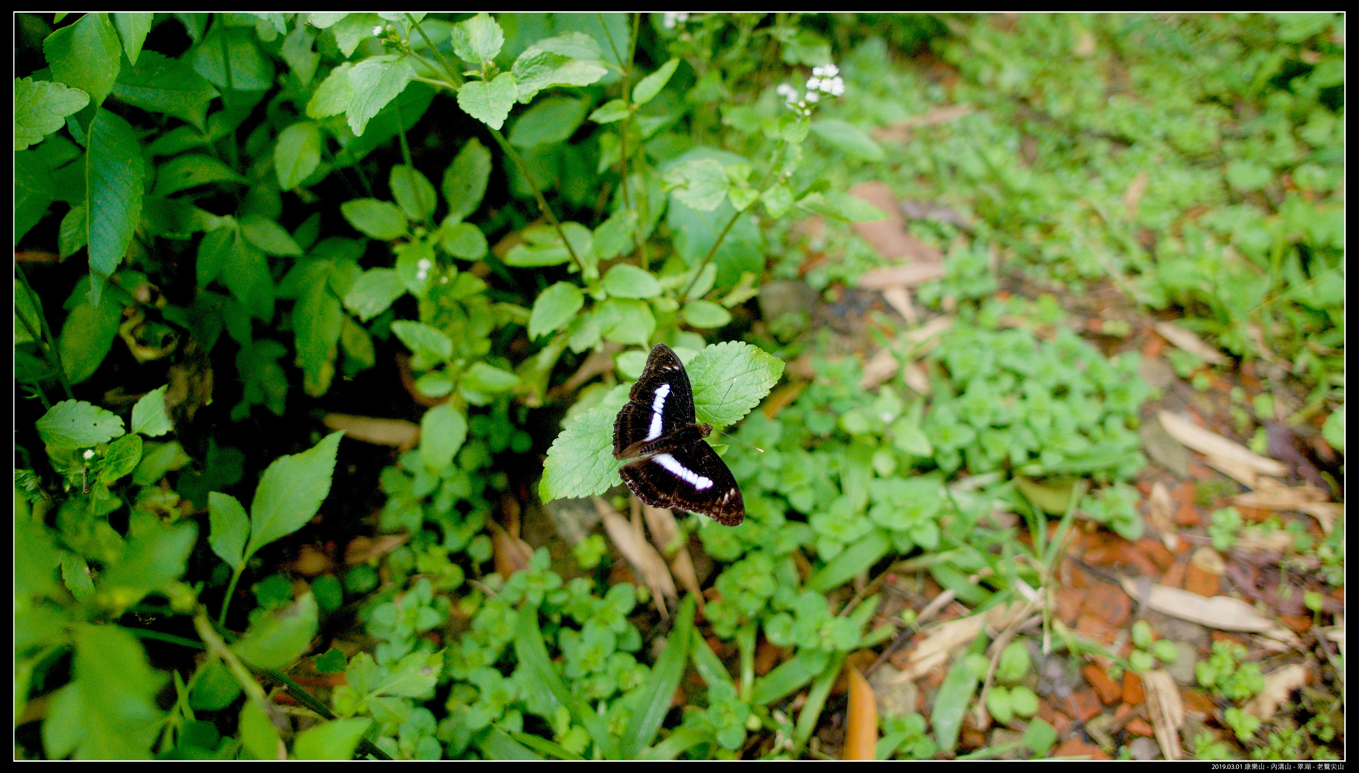 這隻可能是雌蝶,因為顏色比較暗沈,那幾條白色橫紋比較淡,雄蝶上下翅面裡面會各有一塊非常鮮艷的紫斑,若有機會拍到,就比較容易確定。
