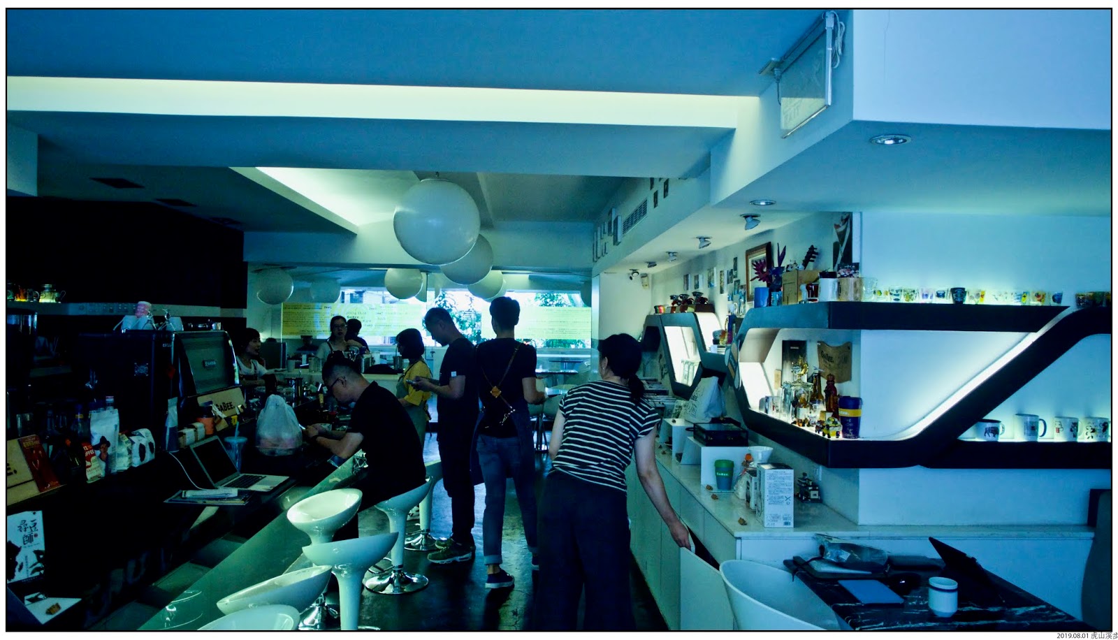 台灣咖啡廳一般流行採用溫暖小確幸文青設計風格,難得一見的,【COFFEE LOVER's PLANET】中間的吧台採用一種高科技太空艙設計感,而且中間吧檯的空間面積相當大,大概是為了可以容納多種沖煮方式的器具。