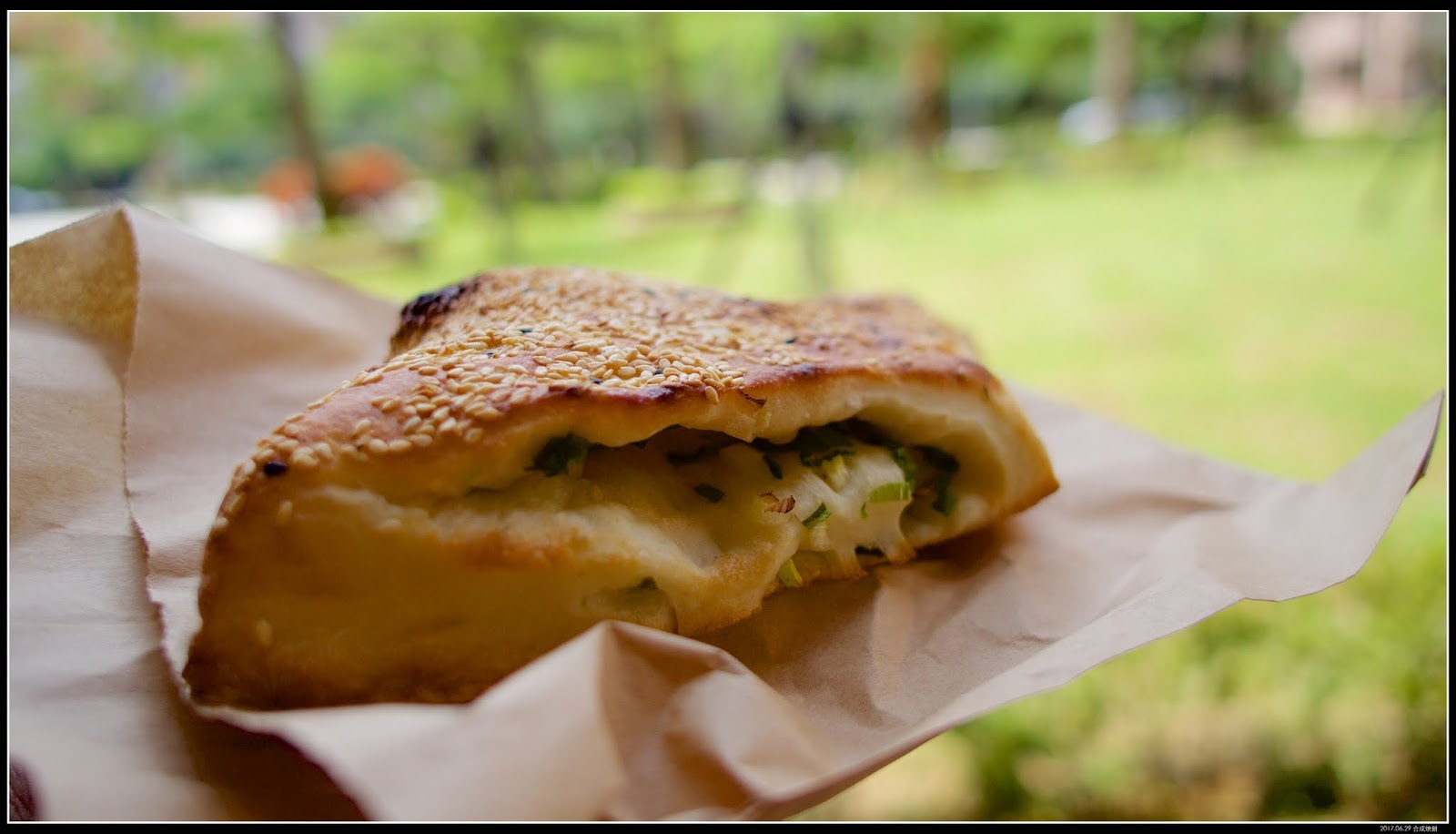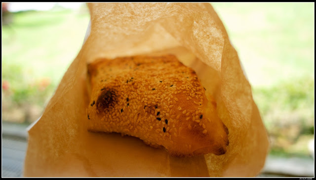 不過,感覺這是用電烤爐烤的,麵皮已經是酥脆成一片一片的,尤其表面鋪滿滿的芝麻,加上微甜的內裡,這趁熱吃,是蠻好吃的。