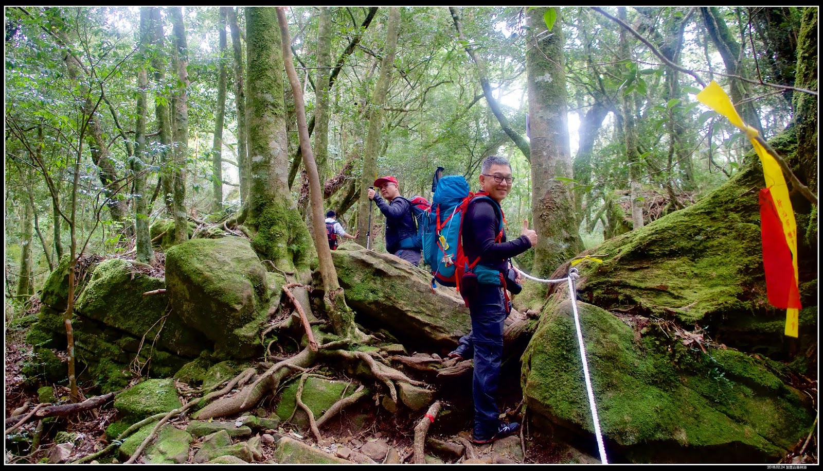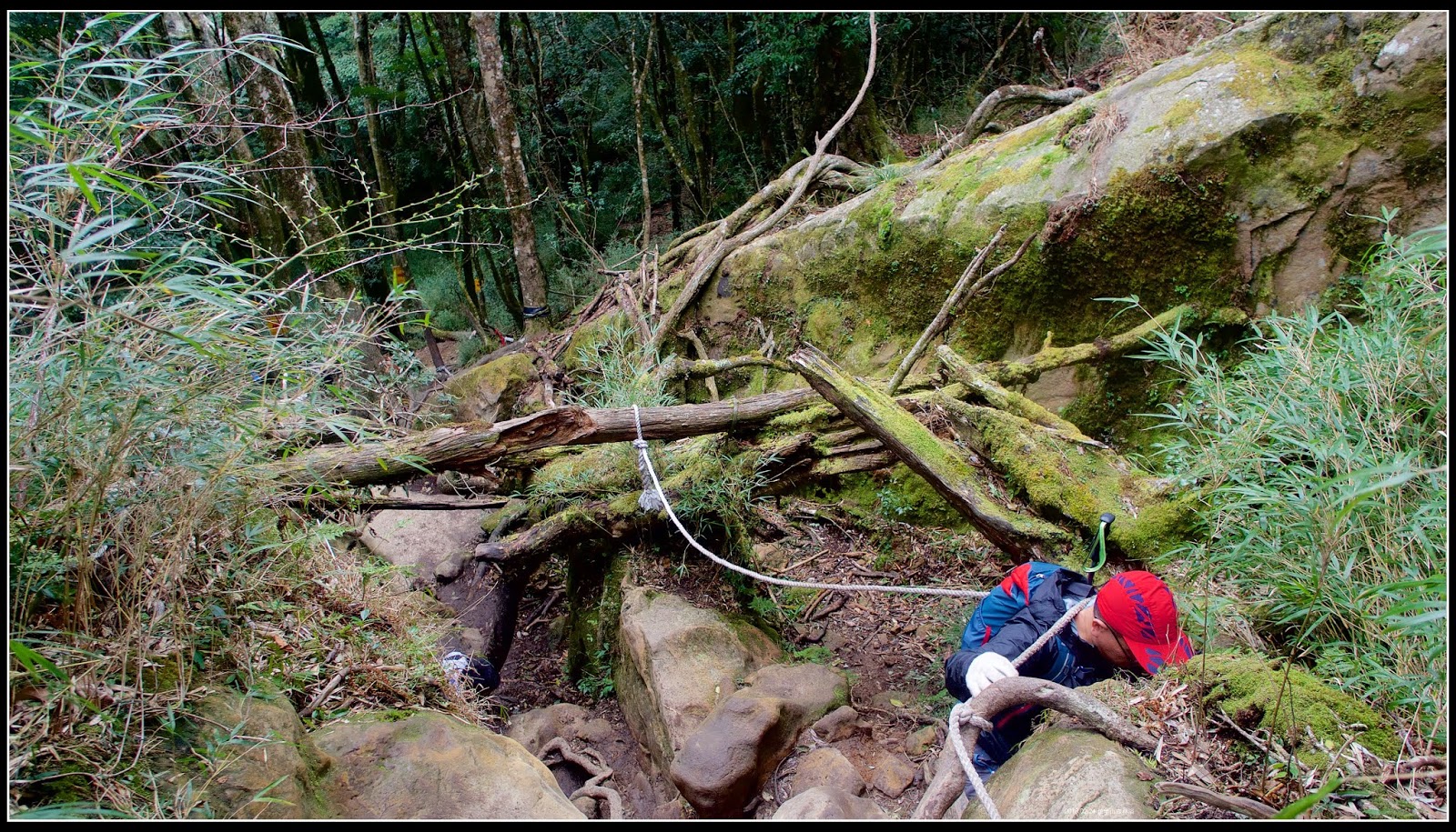 過了救援標號:『9』,開始進入今天旅程的拉繩攀爬路段,很有瘦稜路徑風格,這兩段算是今天的精華區。