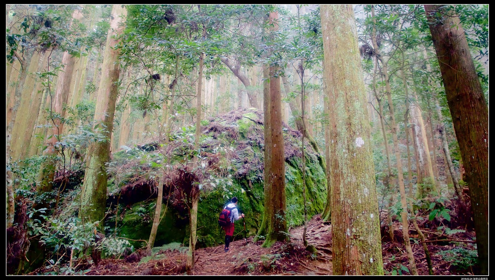 沿路除了一開始的風美溪,一路上都沒有遇到其他溪流,也沒有水源,可是沿途都是潮濕環境,柳杉上有不少箘菇,不知道這裡是不是霧林帶?