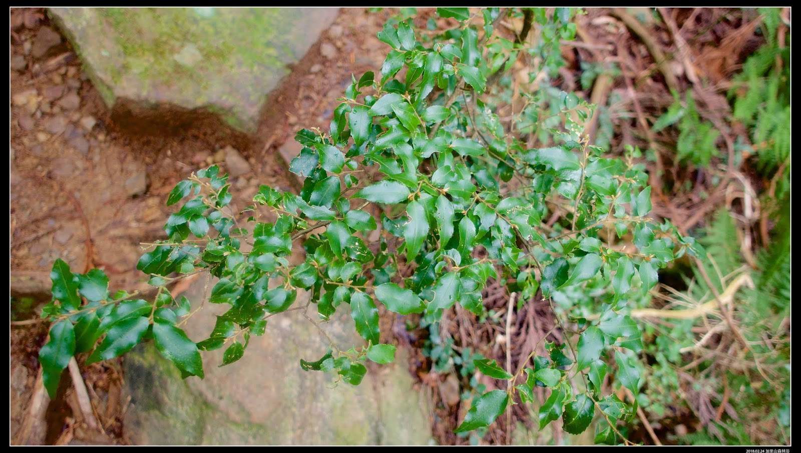 救援標號『9』前的石壁,看到不少遊記都是在這片石壁上拍到一葉蘭,現在不是開花季節,無法看到只有葉子的一葉蘭。