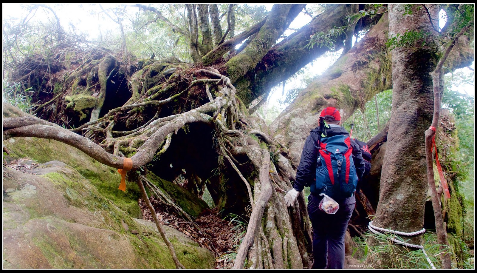 回程下山,這是【加里山】基點下方的拉繩處,這裡枯樹樹根很多,有很多施力點,下山也算是好走。