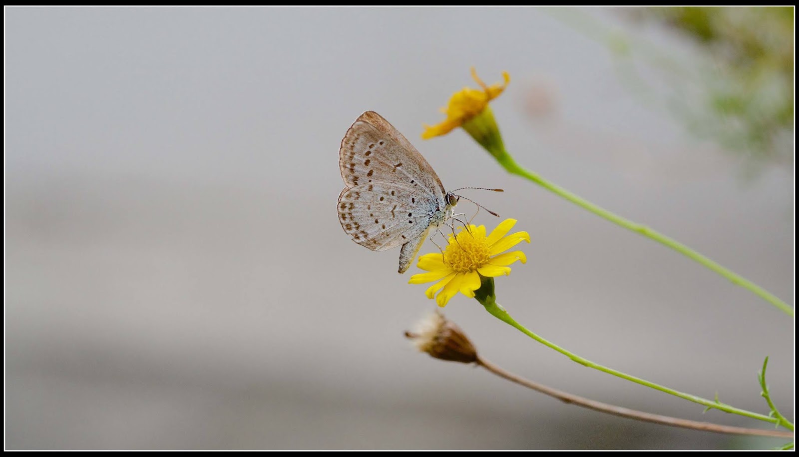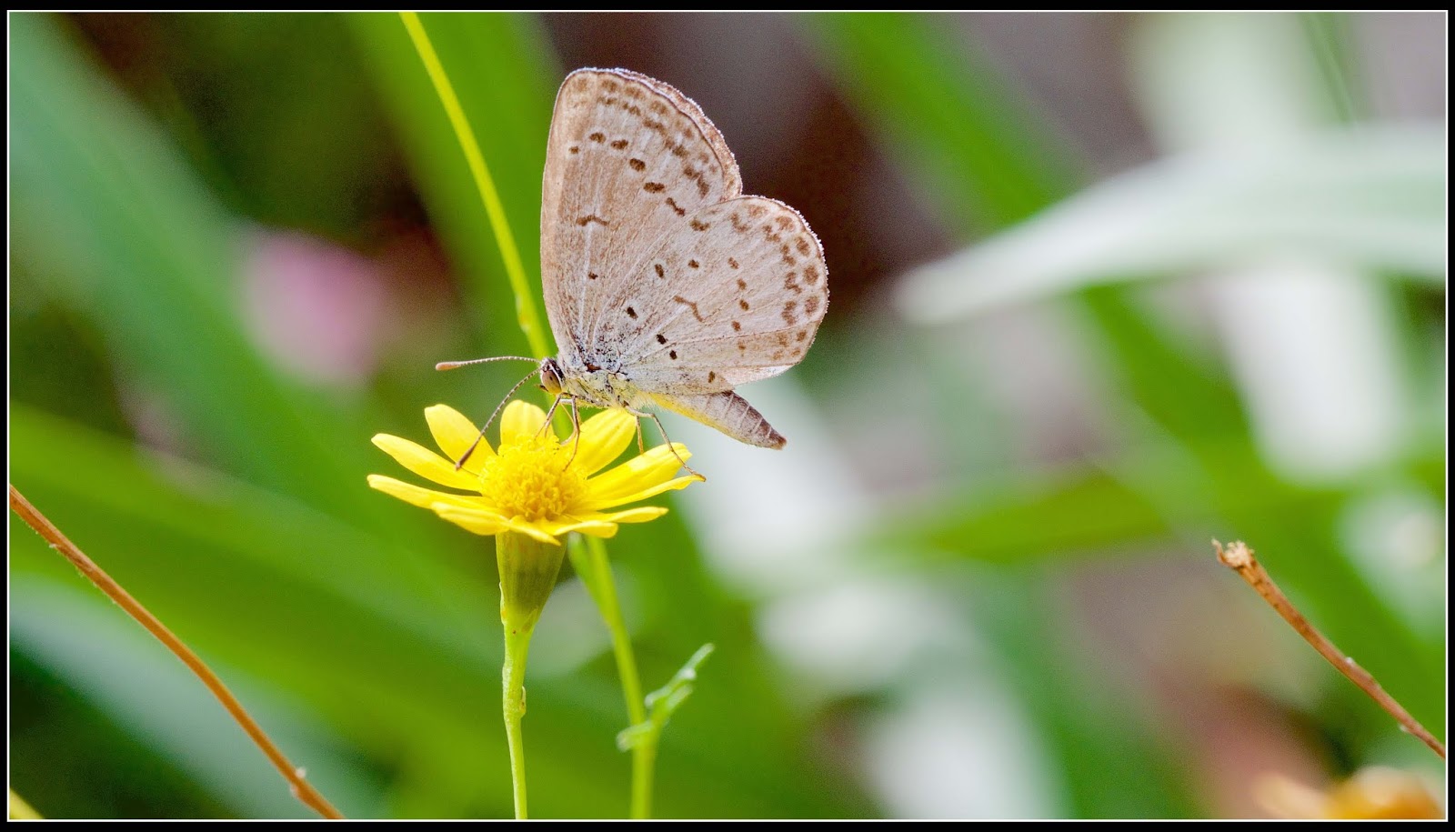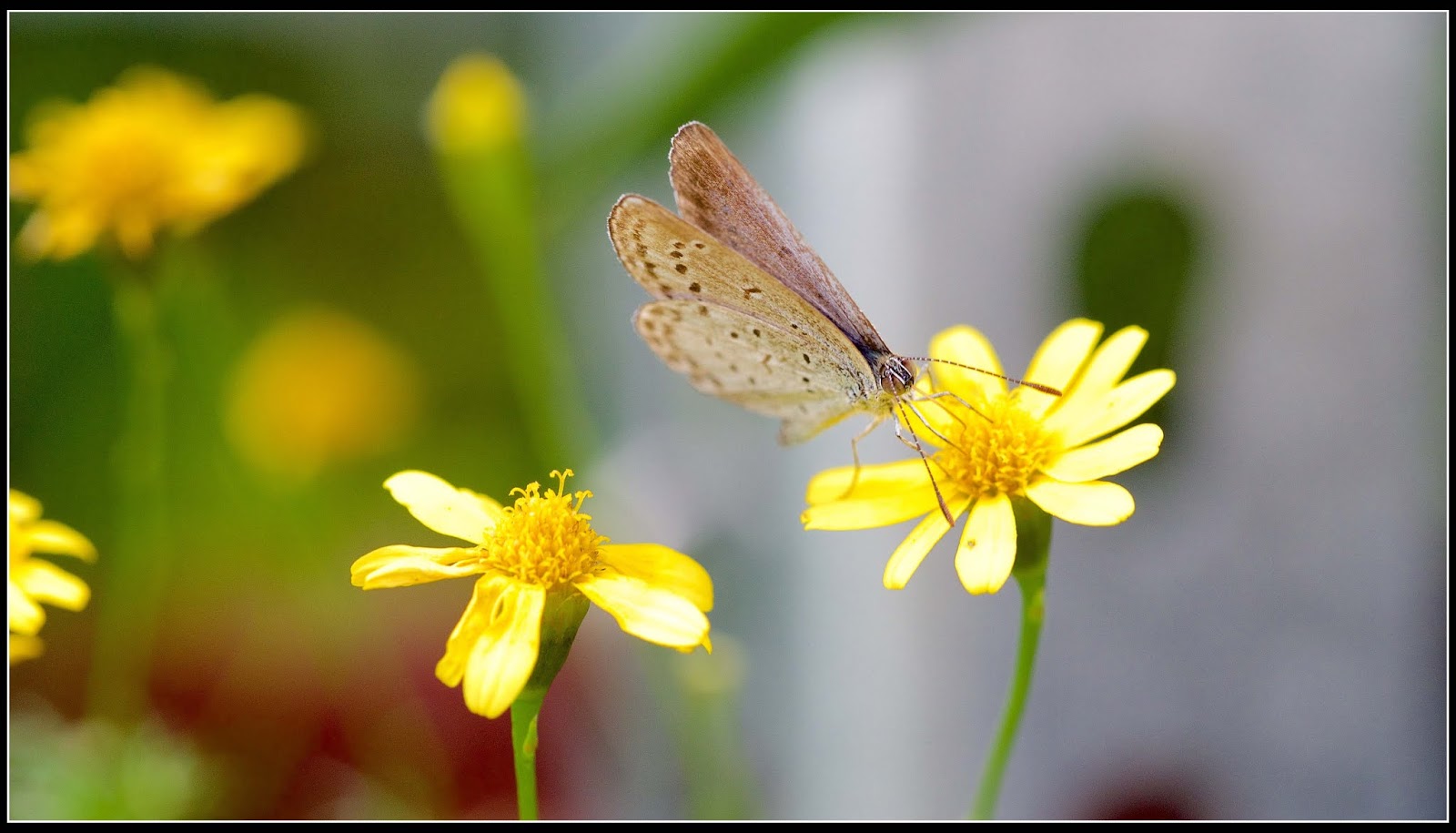 很常見的小灰蝶,非常喜歡金絲菊,就算我騷擾它生氣的飛走,沒多久又忍不住回到金絲菊這裡。