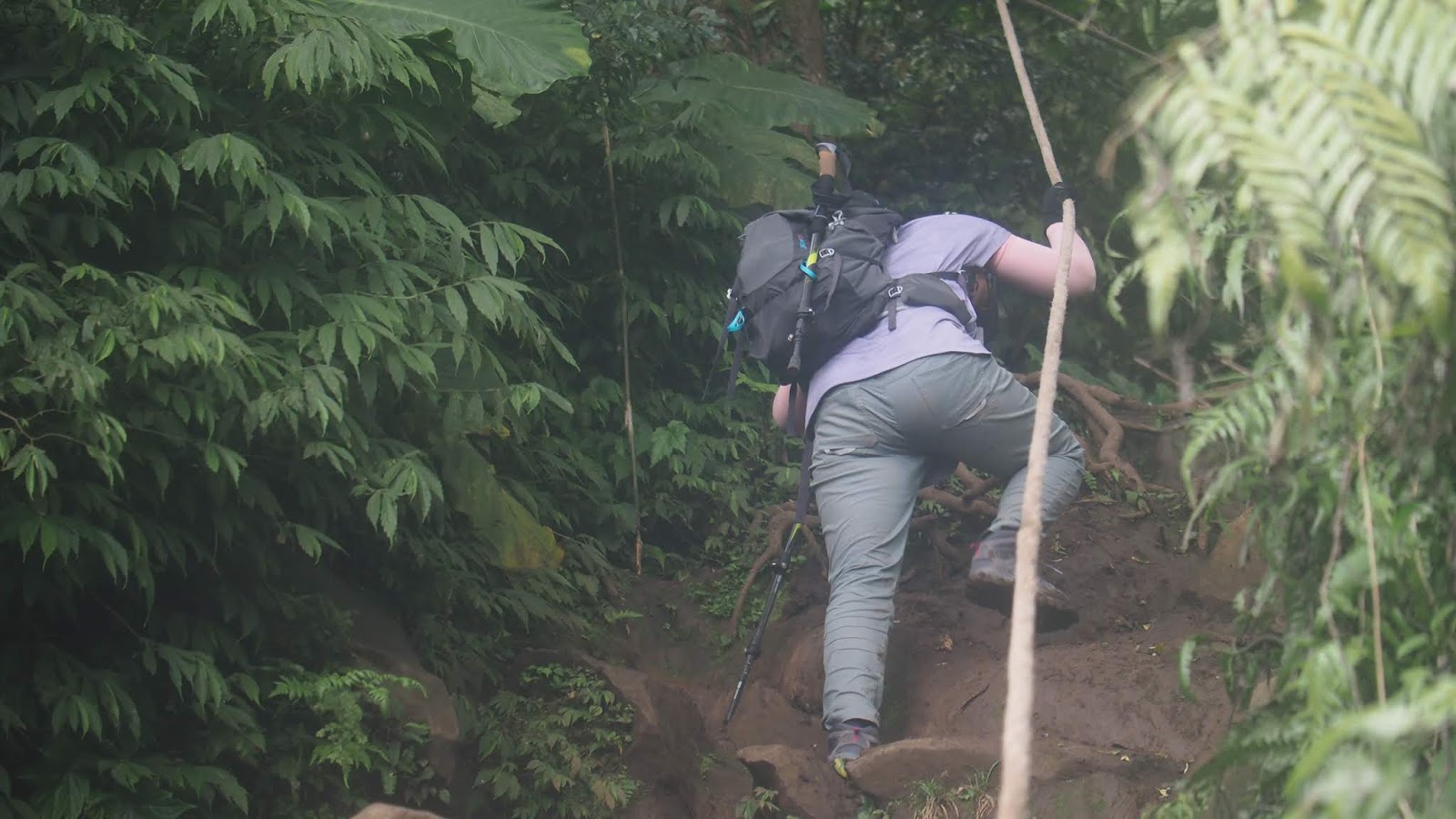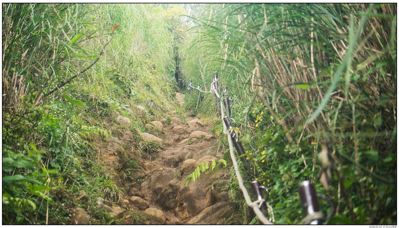 【大屯山西峰】【大屯山南峰】這段路是這次路線裡面最原始的路段,不少簡單的拉繩段,下雨天溼滑,非常建議雨鞋。