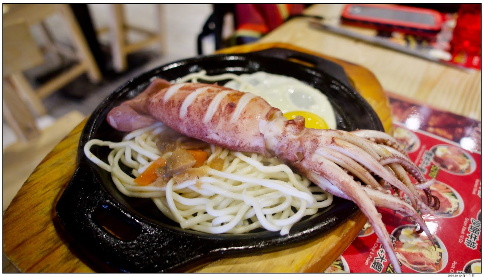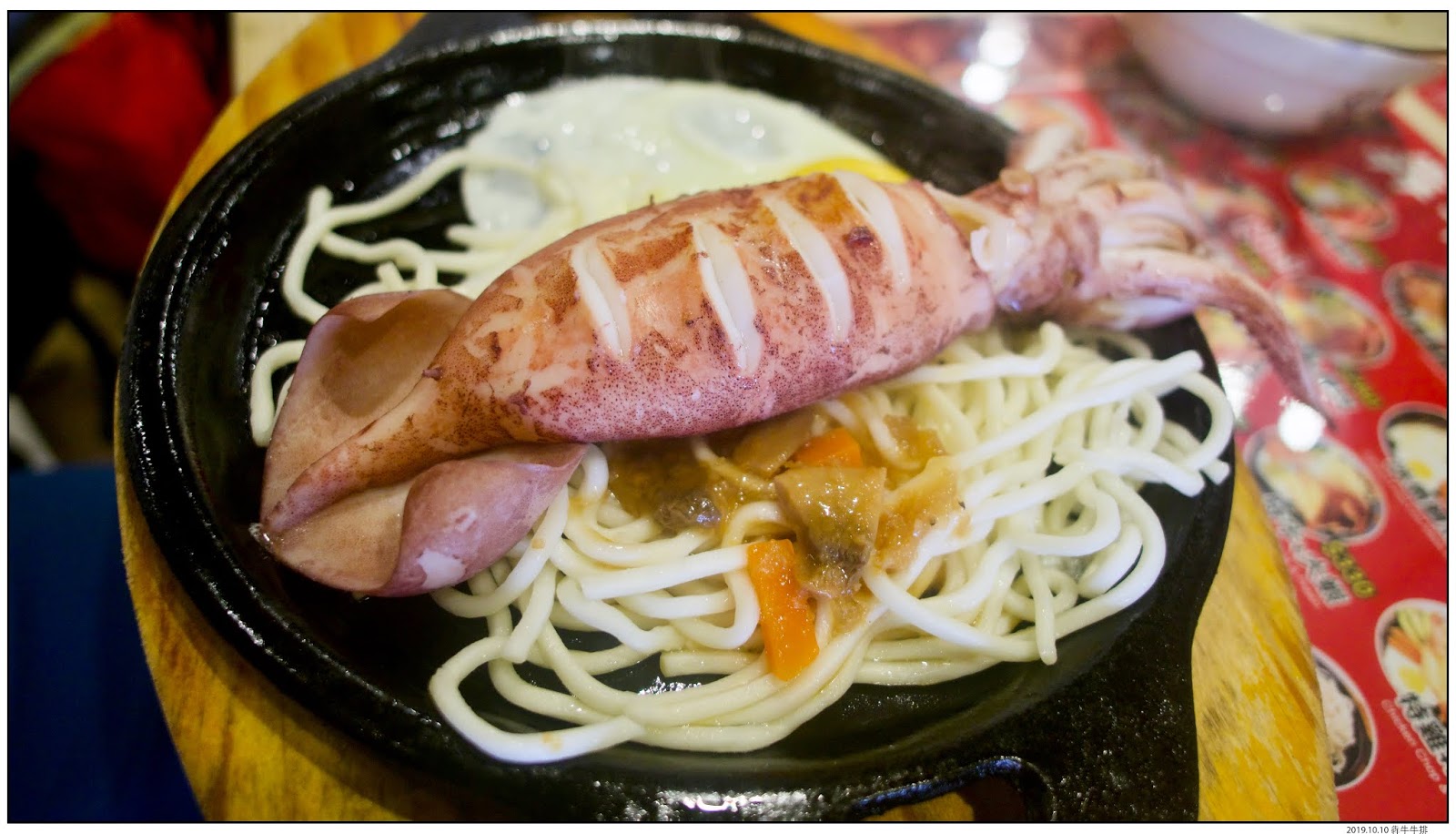 240元的「中卷排」,以鐵板做對比,中卷蠻大一隻的,但還是沒有牛排的飽足感,不過,吃膩牛排想換換口味,倒是蠻推薦試試中卷排。