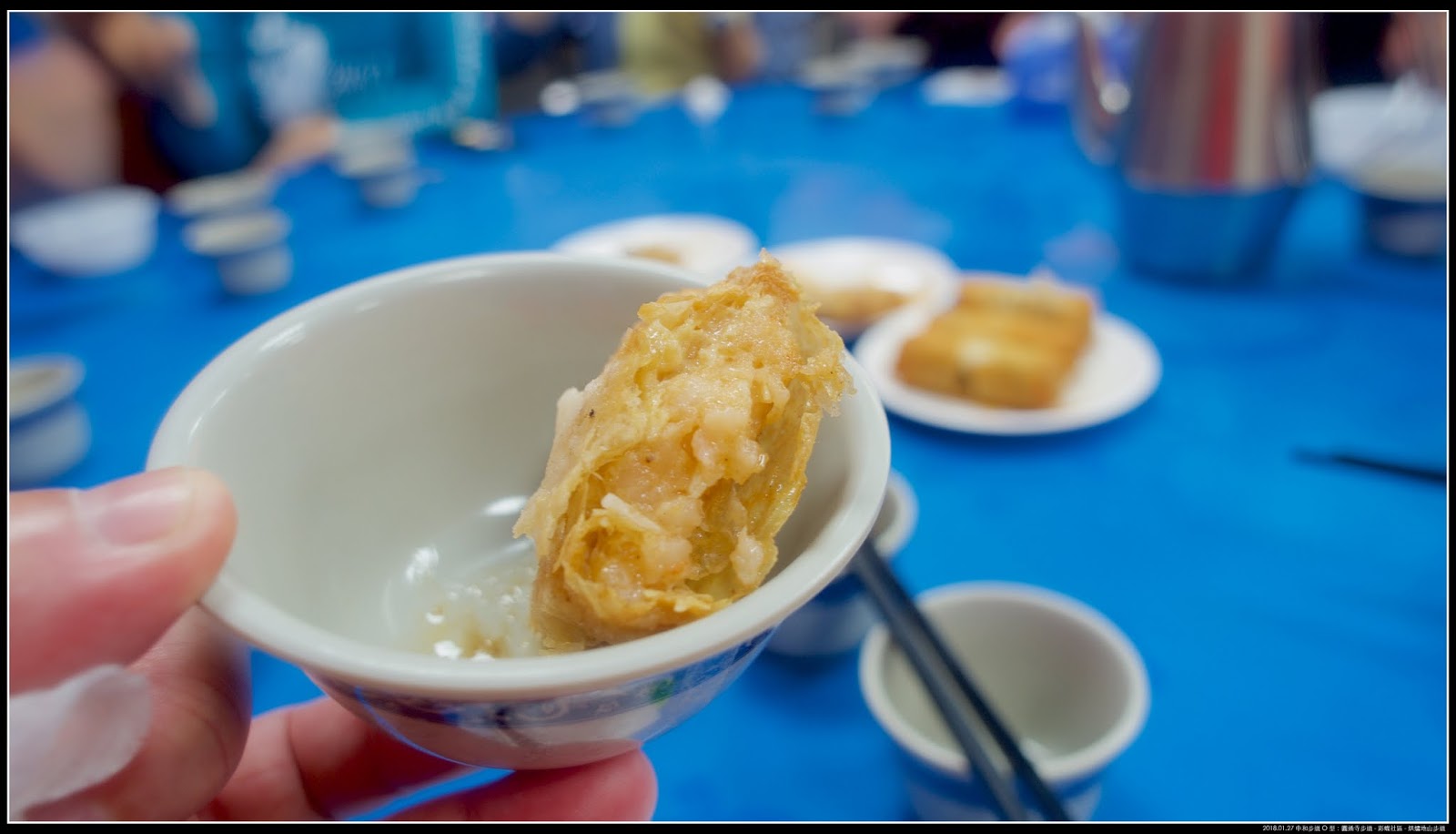 外表看起來像是炸春捲,不過這應該是用豆皮炸的,內餡是鮮蝦。