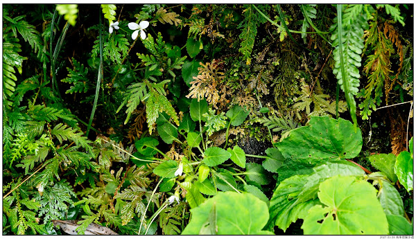 「普萊氏堇菜」生長環境:喜歡非常潮濕的岩壁上,似乎比較能夠接受水分很多、陰暗群聚的環境。