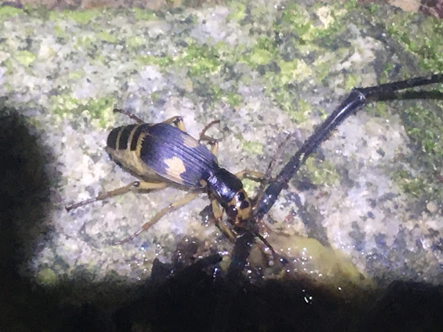 「黃尾放屁蟲」是不會飛行的步行蟲科、肉食性,夜晚快速行走在路面獵捕昆蟲,