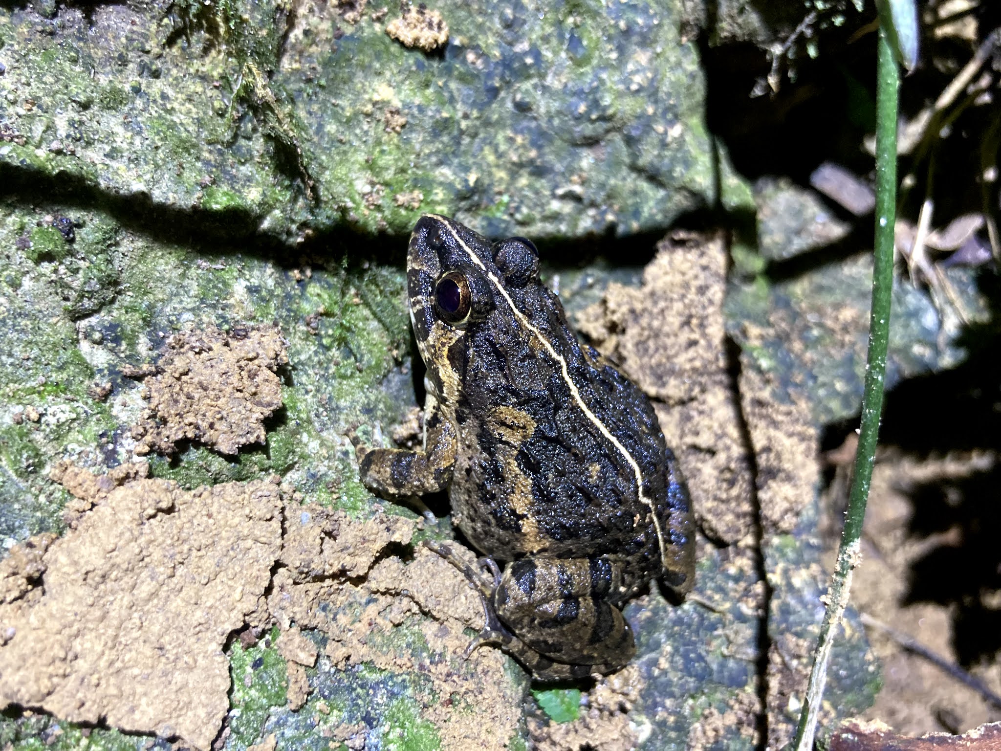 「拉都希氏赤蛙」可能是雨後夜晚【四獸山】區步道最常見到的青蛙。(也有可能其他品種青蛙比較緊張,一下子就跳走)